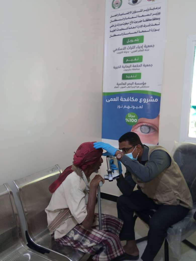 ضمن برنامج مشروع مكافحة العمى تحت شعار ,, لعيونهم نور,, الذي تنفذه مستشفى هيا لطب العيون بدعم من جمعية إحياء التراث الإسلامي بدولة الكويت عبر جمعية الحكمة اليمانية الخيرية بحضرموت ، تم معاينة أكثر من 377 حالة في مجال أمراض العيون بالعيادة الطبية بالمركز الصحي بمديرية يبعث وتقديم لهم الخدمة الطبية و العلاجية وكذلك صرف لهم بعض الادويةو العلاجات ، وقد تم فرز نحو 30 حالة تحتاج اعمليات إزالة المياة البيضاء واعتماد تكاليف نقلهم واجراء لهم العمليات في مستشفى هيا لطب العيون بالمكلا .