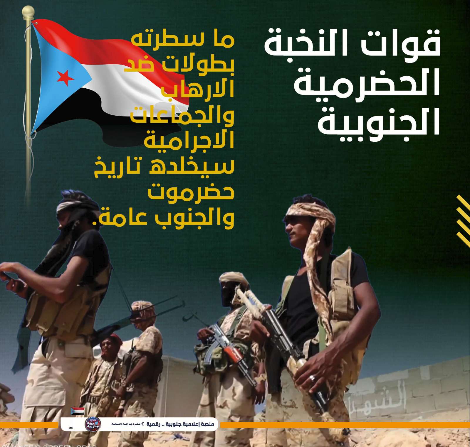 أبناء الجنوب تذكروا التضحيات الجسام التي قدمتها قوات النخبة الحضرمية الجنوبية بقيادة نائب رئيس المجلس الانتقالي الجنوبي، اللواء ركن فرج البحسني، في تحرير ساحل حضرموت من عناصر تنظيم القاعدة الإرهابي. مشيرين إلى أهمية الحفاظ على الإنجازات العديدة التي تحققت منذ تحرير ساحل حضرموت من العناصر الإرهابية التكفيرية، لا سيما في المجال الأمني والعسكري.