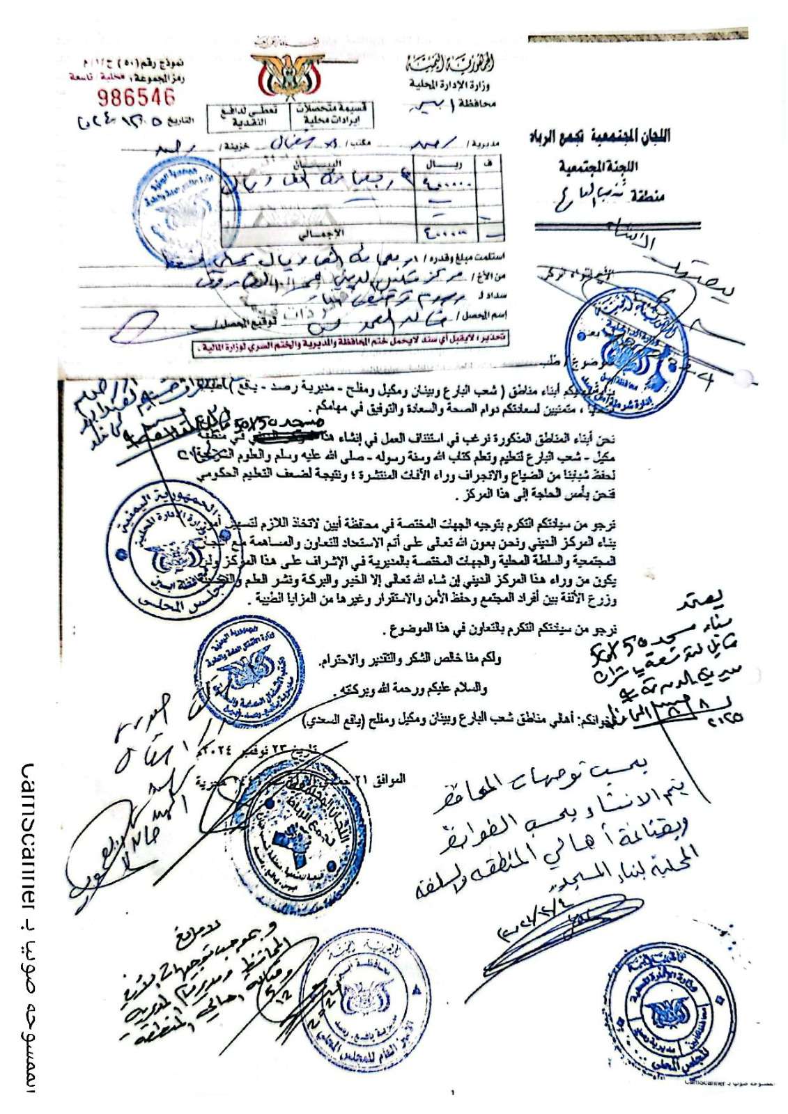 وثيقة "تأييد واسع لبناء مسجد الفاروق لتعليم الكتاب والسنة في يافع مكتب السعدي
