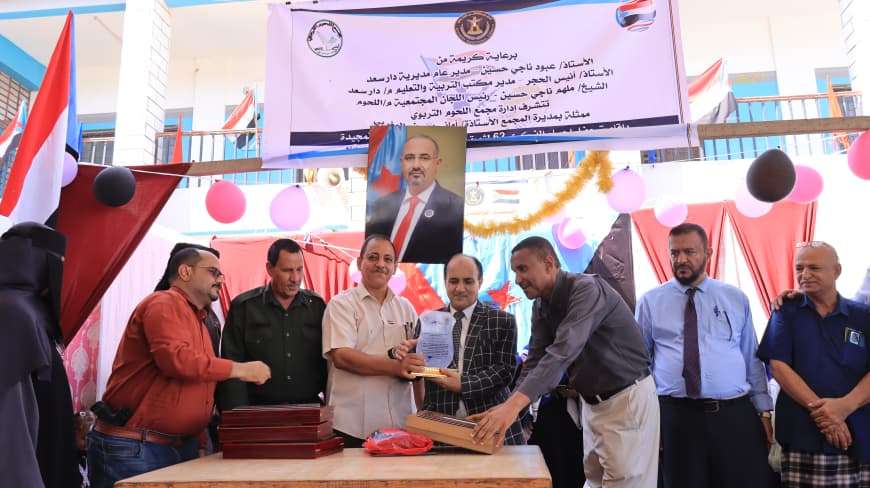 وخلال  الفعالية التي شارك فيها عدد كبير من مختلف اطياف وشرائح المجتمع بدارسعد بمافيهم المرأة ، وشخصيات سياسية واجتماعية يتقدمهم مدير عام المديرية  الأستاذ / عبود ناجي حسين،  ورئيس تنفيذية إنتقالي دارسعد الاستاذ / حسين علي عباد،  ورئيس اللجان المجتمعية / جلال علي يحيى ،وقائد المنظمة الأمنية السابعة العميد/ صالح سعيد الحازمي ومدير إدارة التربية والتعليم الأستاذ / أنيس عبده سعيد ورئيس اللجان المجتمعية بمركز اللجوم ، وعدد من الشخصيات الاجتماعية ومدراء المكاتب التنفيذية ومدراء المدارس بالمديرية، للمشاركة في الحفل الفني الذي بدأت أولى فقراته بآيات من الذكر الحكيم ثم وقف الحاضرين معنا لأداء النشيد الوطني الجنوبي، بعد ذلك تقدمت مديرة المجمع الاستاذة / اماني يوسف مغربي باللقاء كلمة الحفل الذي رحبت من خلالها بالحاضرين جميعا كل بإسمه وصفته ، معبره عن شكرها وتقديرها لكل من ساهم في رعاية ودعم هذه الفعالية بما فيهم صاحب الجهد الكبير في هذا العمل المميز  الشيخ / ملهم ناجي حسين رئيس مركز اللحوم ، مشيرة الى الفخر بالوطن الغالي والانتصارات الاكتوبرية التي حققها أبطال المقاومة الجنوبية وانتقلت اول شراره لها من جبال ردفان الابية بقيادة البطل راجح بن غالب لبوزه وباقي الثوار الذي كانوا الى جانبه من مختلف محافظات الجنوب ، لتستمر ثورة 14 أكتوبر من عام  1963م، في النضال ومقاومة المحتل البغيض،  وتنجح في تحقق كامل أهدافها حتى نال شعب الجنوب النصر والاستقلال في عام 1967م وتحديدا في 30 نوفمبر المجيد، بعد  خروج واجلاء آخر جندي بريطاني من أرض الوطن  .