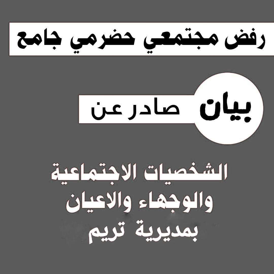 تتابع الشخصيات الاجتماعية والوجهاء والأعيان  في مديرية تريم الاحداث المتسارعة ومايدور على ارض الواقع الحضرمي من سعي بعض القوى السياسية والقوات الدخيله لمحاولة التدخل في شؤون محافظة حضرموت وتقويض السلم والامن والامان الذي تحظى به محافظة حضرموت ومحاولة جرها الى مربع العنف والصدام الذي يتنافى مع ارادة ابناءها الحضارم