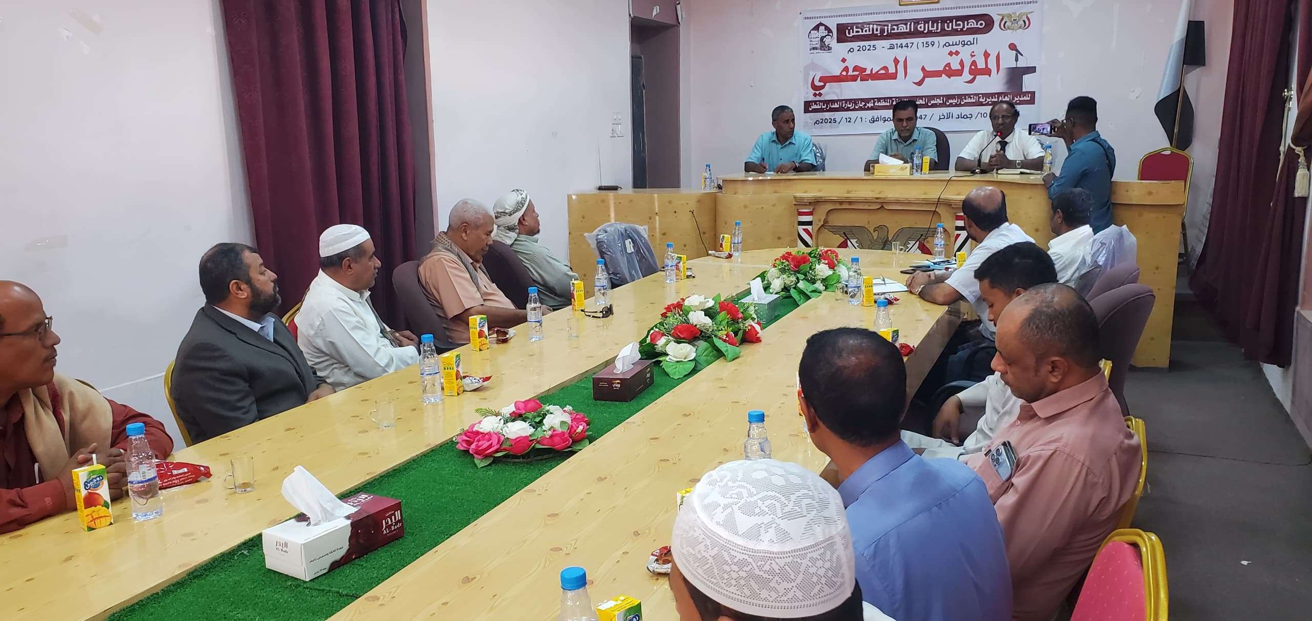 نظمت لجنة مهرجان زيارة الهدار بالقطن وبرعاية المدير العام للمديرية رئيس المجلس المحلي المشرف العام للمهرجان الأستاذ/ عبداللطيف محمد النقيب صباح اليوم الإثنين 1 ديسمبر الجاري بقاعة الاجتماعات بديوان السلطة المحلية بالدوائر الحكومية مؤتمر صحفي لإعلان برنامج و فعاليات المهرجان للموسم "159" للعام 1447ه بحضور الامين العام للمجلس المحلي بالمديرية الأستاذ محمد عوض بلعجم وعدد من مدراء المكاتب التنفيذية والهيئة الإدارية والشخصيات الإجتماعية و الثقافية و عدد من الإعلاميين بالمديرية .