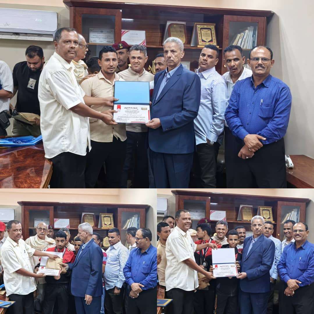حضر التكريم الاستاذفيصل شوكرة مستشار المحافظ الشؤون الرياضه ووكيل محافظ العميد عبد الفتاح هيثم وعدد من القيادات.