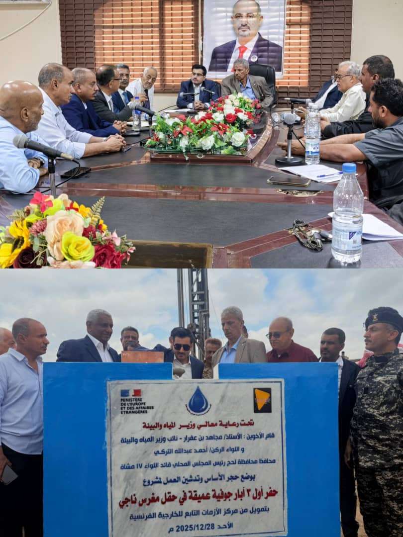 ويأتي هذا المشروع ضمن مساعي السلطة المحلية ووزارة المياه لتعزيز الشراكات الدولية وتحسين البنية التحتية للمياه، بما يسهم في تخفيف الأعباء الإنسانية وتحقيق قدر من الاستقرار الخدمي في محافظة لحج.