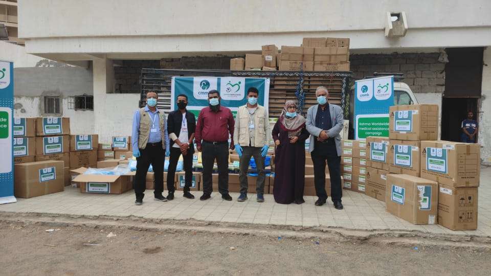 بحضور وكيل المحافظة أ. رشاد شائع وممثل وزارة الصحة د.سعاد الميسري… دشنت منظمة “رحمة حول العالم للإغاثة والتنمية”، الأربعاء في مستشفى الصداقة التعليمي بمدينة عدن، حملة توزيع المستلزمات الطبية المقدمة من شركة CMMB الأمريكية؛ لتحسين الوضع الصحي في مراكز العزل بالمدينة.