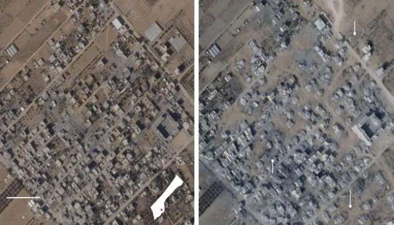 ومع ذلك، تقدم الصور الفضائية التي التقطتها شركة "بلانيت لابس" دليلاً مقلقاً: فقد تم تدمير عشرات المباني أيضاً خارج هذه الحدود، في مناطق من المفترض أن تكون خاضعة لسيطرة حماس وخالية من العمليات العسكرية.