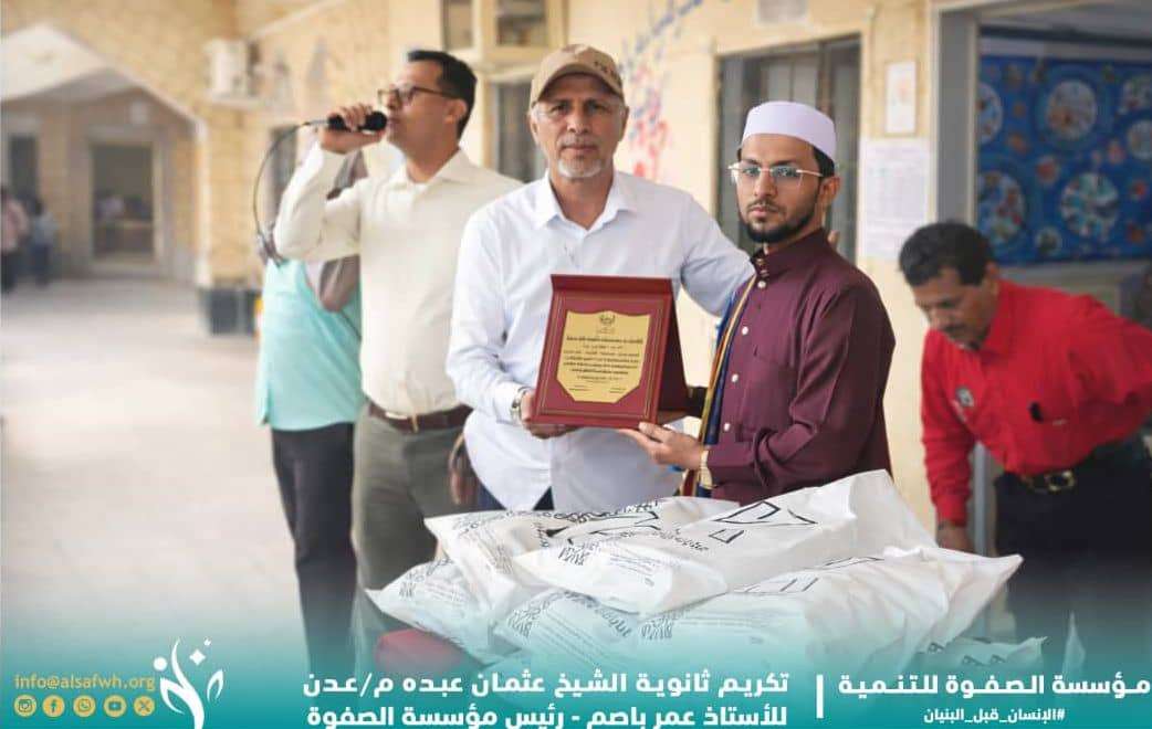 إدارة ومعلمو وطلاب ثانوية عثمان عبده بالشيخ عثمان يكرمون رئيس مؤسسة الصفوة