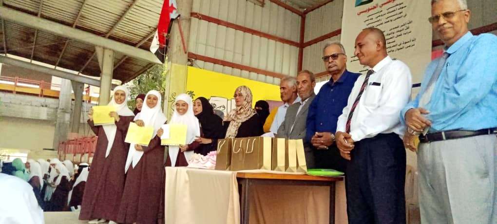 حيث وتم تكريم خاص للطالبة اماني خالد من ذوي الاحتياجات الخاصة و توزيع الشهادات التقديرية للطالبات الاوائل للقسمين الادبي والعملي وكذا دعم مالي مقدم من الشيخ/علي عبيد الصلاحي- رئيس مجلس الاباء والأمهات بمحافظة عدن ورئيس مجلس الاباء بمديرية المنصورة.