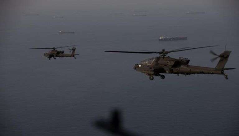 طائرات أباتشي AH-64 أثناء قيامهم بدورية فوق مضيق هرمز