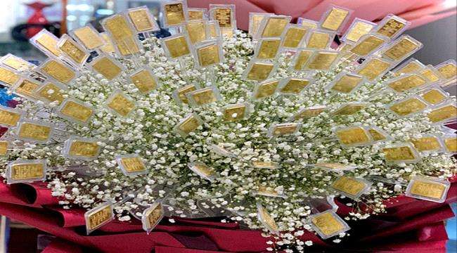 بمناسبة عيد المرأة، طلب رجل من وسط مدينة دا نانغ الفيتنامية، باقة زهور مصنوعة من "قطع ذهبية"، تزيد قيمتها عن 7 مليارات دونج فيتنامي (307 آلاف دولار أمريكي) ، من أجل "قريبته".
