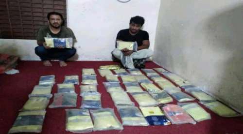 ضبط افراد النقطة الامنية في منطقة دوفس شرقي العاصمة عدن سيارة على متنها شابين وبحوزتهما 41 كيلو حشيش كانت في طريقها إلى العاصمة عدن.