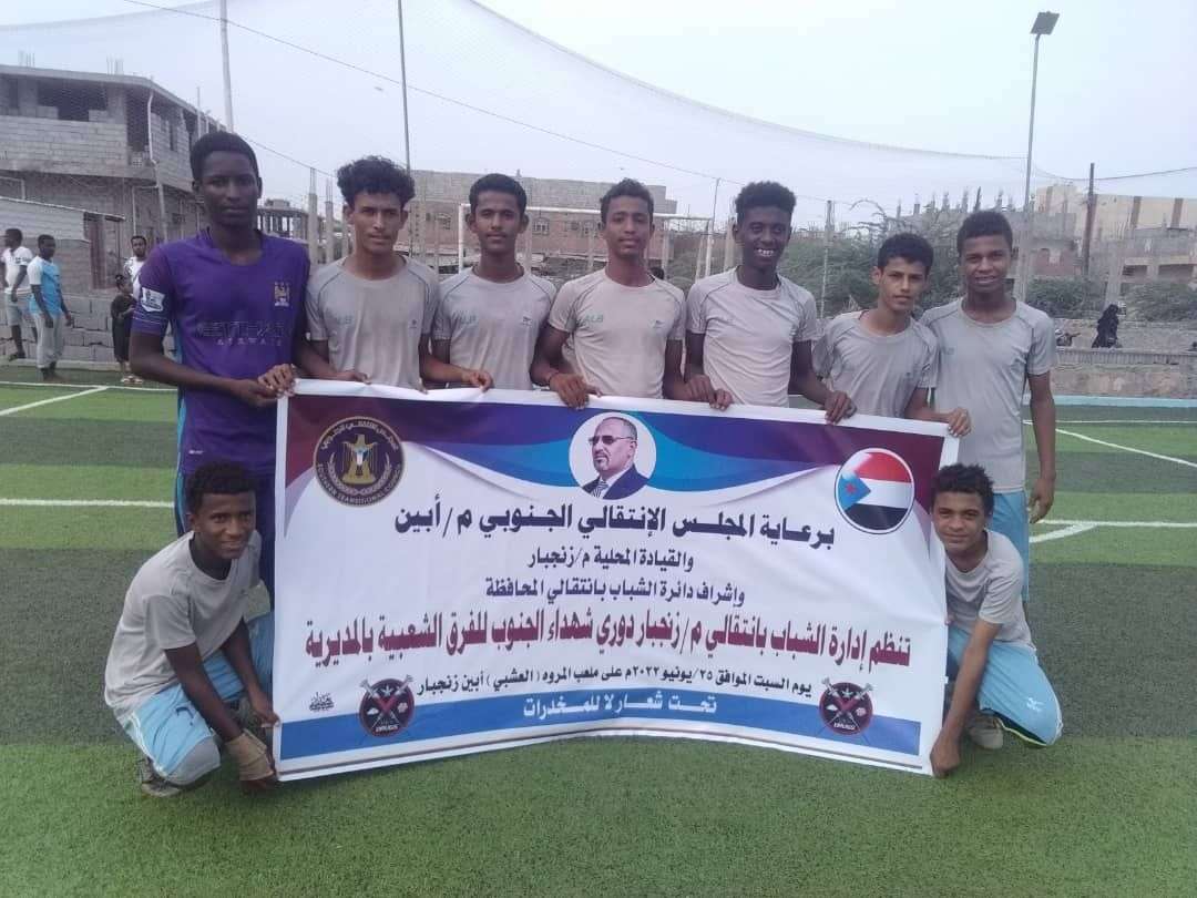 تواصلت عصر اليوم الأحد على ملعب المروة المكتسية ارضيتة بالعشب الصناعي الأخضر بمدينة زنجبار منافسات بطولة شهداء الجنوب الكروية للفرق الشعبية برعاية القيادة المحلية للمجلس الانتقالي الجنوبي بأبين وبإشراف دائرة الشباب والطلاب بانتقالي المحافظة ،