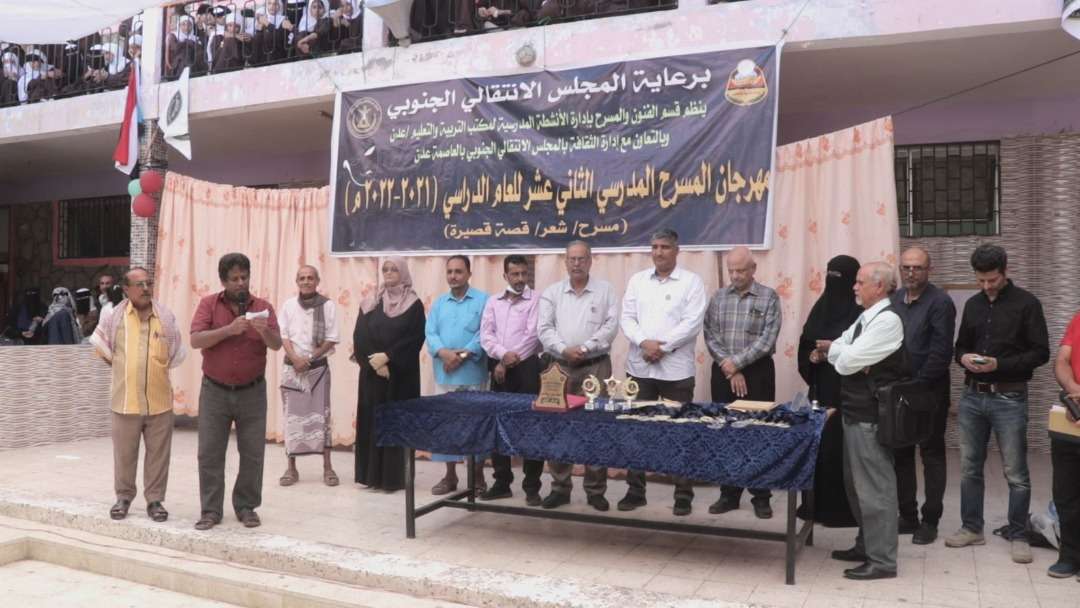 اختتم ، اليوم الخميس، في العاصمة عدن مهرجان المسرح المدرسي 12 للعام الدراسي 2021 - 2022، الذي نظمه قسم الفنون والمسرح بإدارة الأنشطة المدرسية لمكتب التربية والتعليم، برعاية المجلس الانتقالي الجنوبي.