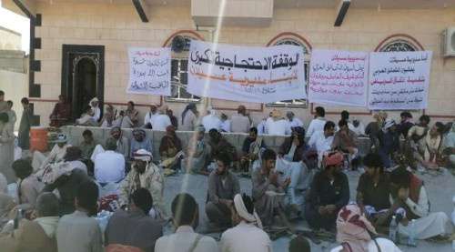 أبناء مديرية عسيلان ينظمون وقفة احتجاجية تندد بخيانات سلطة الإخوان