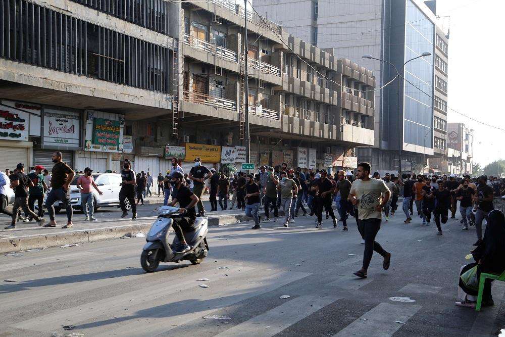 وقال مصدر أمني إن "المتظاهرين حاولوا اقتحام المنطقة الخضراء من جهة قريبة من وزارة الدفاع وقاموا بإلقاء الحجارة، لكن تم ردعهم من قبل قوة مكافحة الشغب"، مضيفا أن "القوات الأمنية قامت بإطلاق النار في الهواء" لتفريق المتظاهرين.