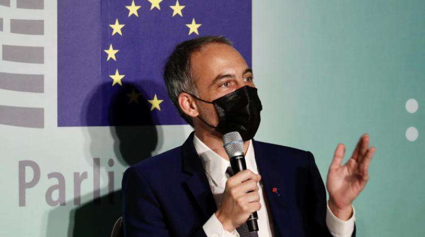 العضو الفرنسي في البرلمان الأوروبي رافايل غلوكسمان يتحدث خلال مؤتمر صحافي في تايبيه