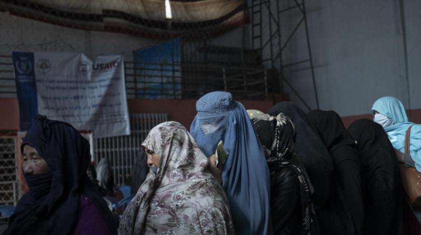 نساء ينتظرن تلقي أموال يوزعها برنامج الغذاء العالمي في كابل