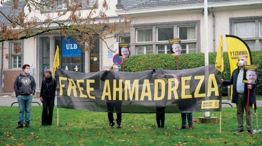 احتجاج خارج السفارة الإيرانية في بلجيكا على سجن السويدي