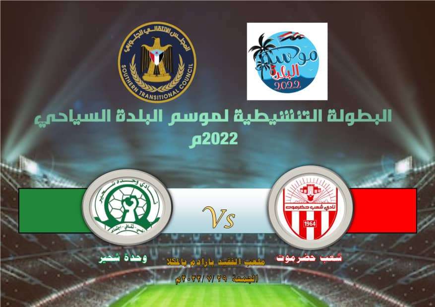 البطولة التي يرعاها الرئيس القائد عيدروس بن قاسم الزبيدي رئيس المجلس الانتقالي الجنوبي تنطلق بلقاء الافتتاح الذي يضم ناديي شعب حضرموت و وحدة شحير ضمن المجموعة الأولى.