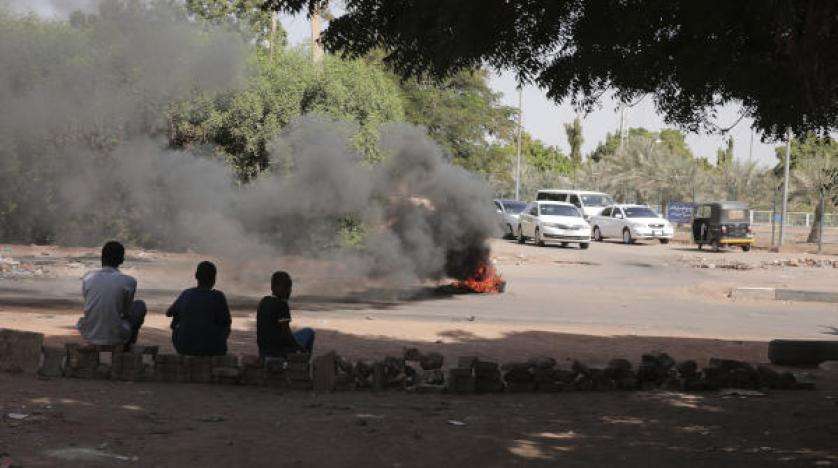 متظاهرين يحرقون الإطارات خلال احتجاجات في الخرطوم