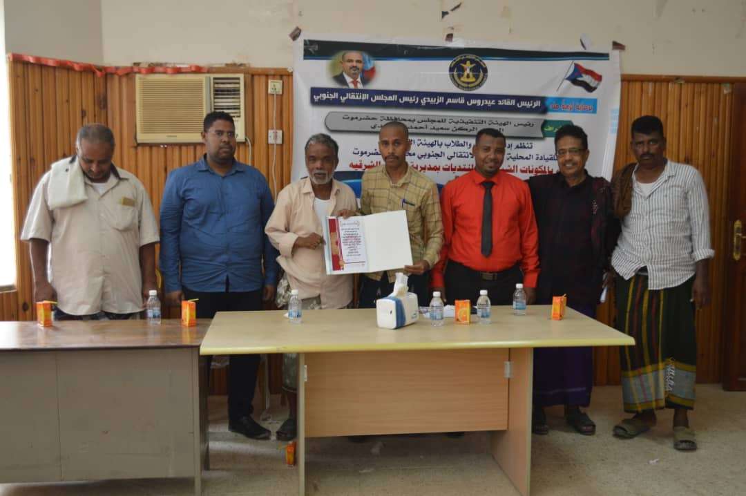 حضر اللقاء الأستاذ محمد بن حيدرة نائب مدير الإدارة التنظيمية بانتقالي حضرموت و محسن الوحيري مدير إدارة الشباب والطلاب بانتقالي الديس الشرقية وعدد من أعضاء الهيئة التنفيذية للقيادة المحلية للمجلس الانتقالي الجنوبي بالديس الشرقية.