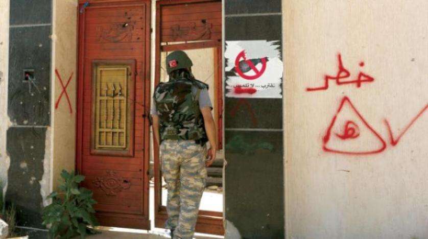جندي تركي أمام منزل في ضاحية صلاح الدين جنوب طرابلس