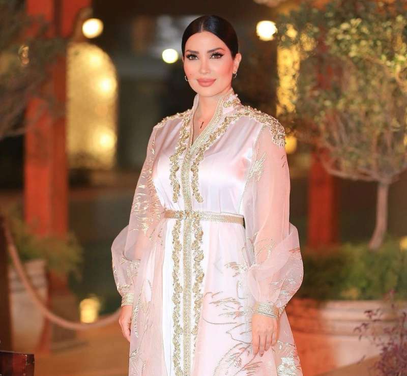 ولبست الفنانة قفطانا مغربيا باللون الأبيض، مزينا بتطريز ذهبي، موقعا من مصممة الأزياء ليلى عمراوي، بينما تميزت باللون الأخضر بحزام مزخرف مزين بأحجار الكريستال البراقة.