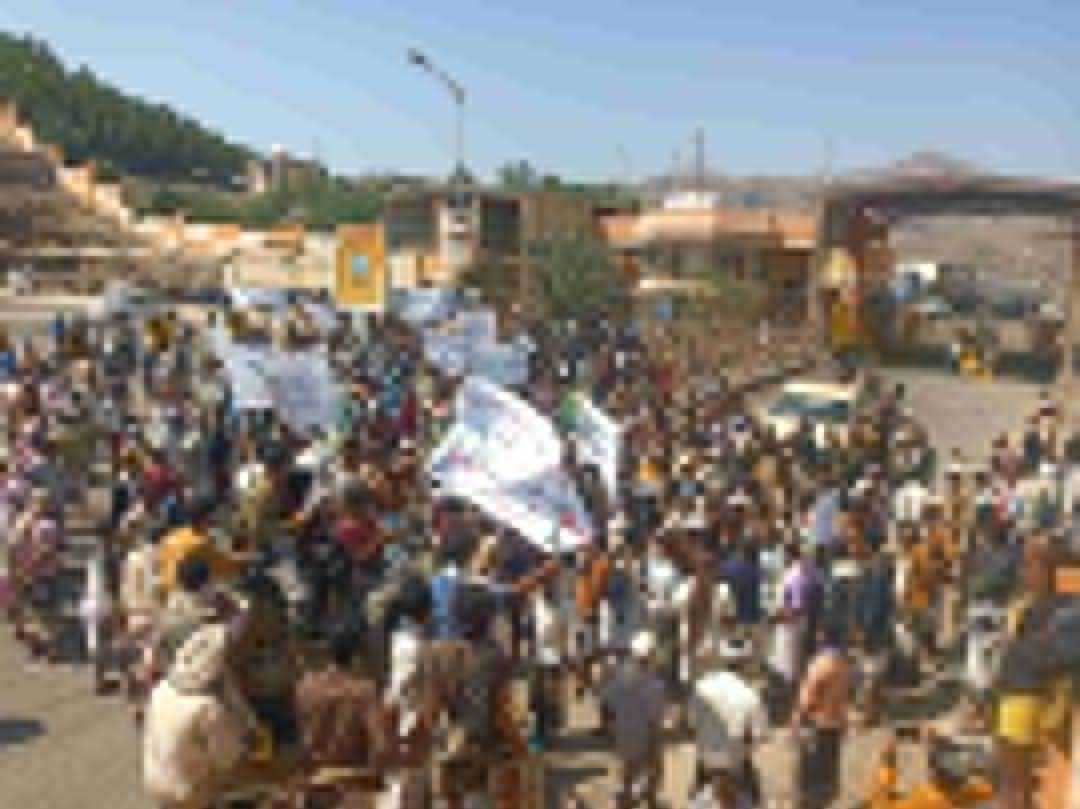 احتشد الآلاف من ابناء قرى ومناطق وعزل مديرية المسيمير الحواشب بمحافظة لحج، ومعهم جموع غفيرة من القيادات والنشطاء والرموز والكوادر والشخصيات السياسية والعسكرية والأمنية والحقوقية والإعتبارية والقبلية والمشايخ والأعيان وجماهير الحراك السلمي من مختلف المناطق والمحافظات الجنوبية عصر اليوم السبت، للمشاركة في مهرجان الوفاء للمعتصمين المرابطين بساحة بوابة مصنع الشركة الوطنية للأسمنت في صاعم، وقد أستقبلت جماهير المعتصمين، الوفود الزائرة بحفاوة كبيرة وترحاب منقطع النظير، وسط ترديد هتافات ثورية وشعارات حماسية معبرة عن حجم المناسبة.