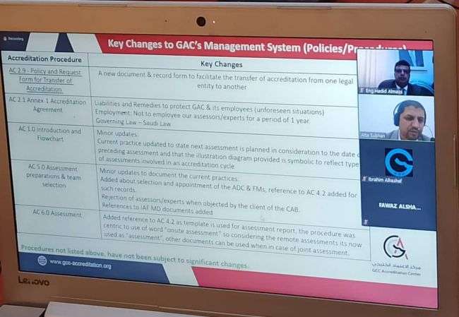 الهيئة اليمنية للمواصفات والمقاييس تشارك الاجتماع الثامن للجنة الاستشارية لمركز الاعتماد الخليجي GAC