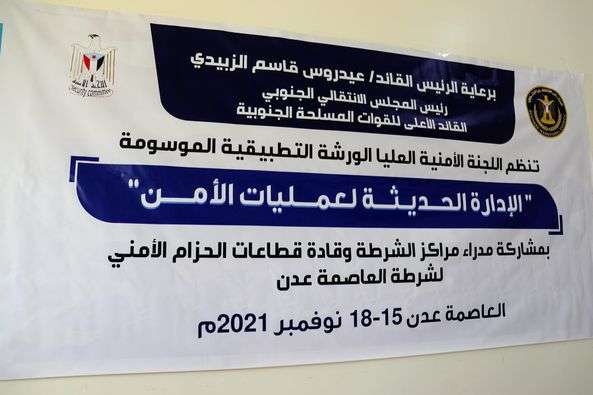 الورشة التطبيقية نظمت برعاية من الرئيس اللواء عيدروس قاسم الزبيدي، رئيس المجلس الانتقالي الجنوبي، القائد الاعلى للقوات المسلحة الجنوبية، وبإشراف من اللواء البروفيسور علي حميد العولقي رئيس اللجنة الأمنية العليا، والعميد الدكتور عبدربه المحرمي عضو اللجنة الأمنية رئيس العمليات المشتركة، والعميد جلال ناصر الربيعي نائب قائد الأحزمة الامنية، قائد قوات الحزام للأمني في العاصمة عدن، ونخبة من الاكاديميين الأمنيين.