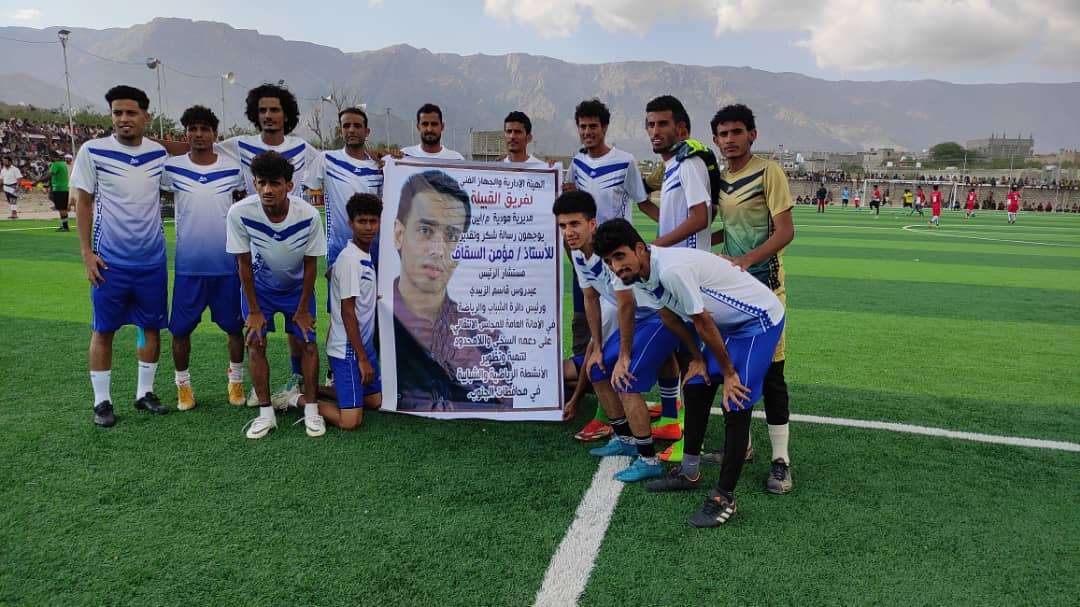 حضر مدير دائرة الشباب في المجلس الانتقالي الجنوبي مؤمن السقاف في ختام بطولة عرفان التنشيطيه من خلال رفع لافته فيها صورته في مباراه النهائيه التي جمعت فريقي MTN وفريق القبيله.