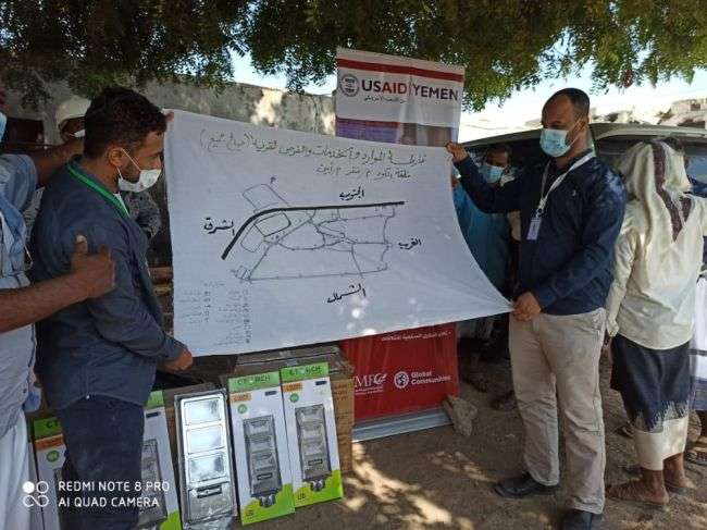 تنفيذ مبادرة انارة الشوارع بالطاقة الشمسية لحي صالح جميع