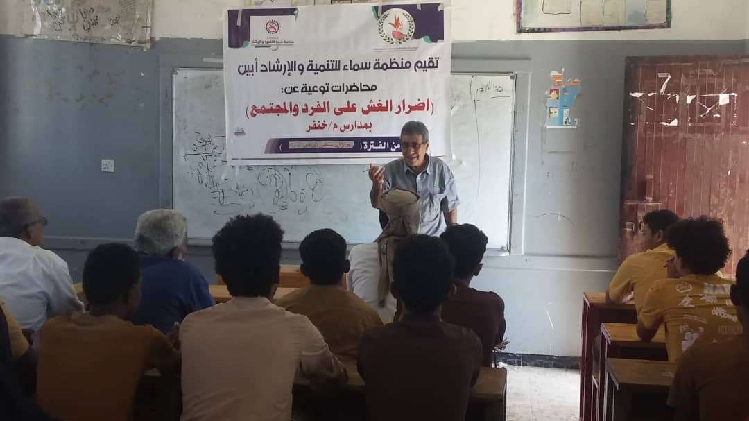 أقامت منظمة سما للتنمية والارشاد ابين عدد من المحاضرات التوعية عن ظاهرة الغش في عدد من مدارس مديرية خنفر .