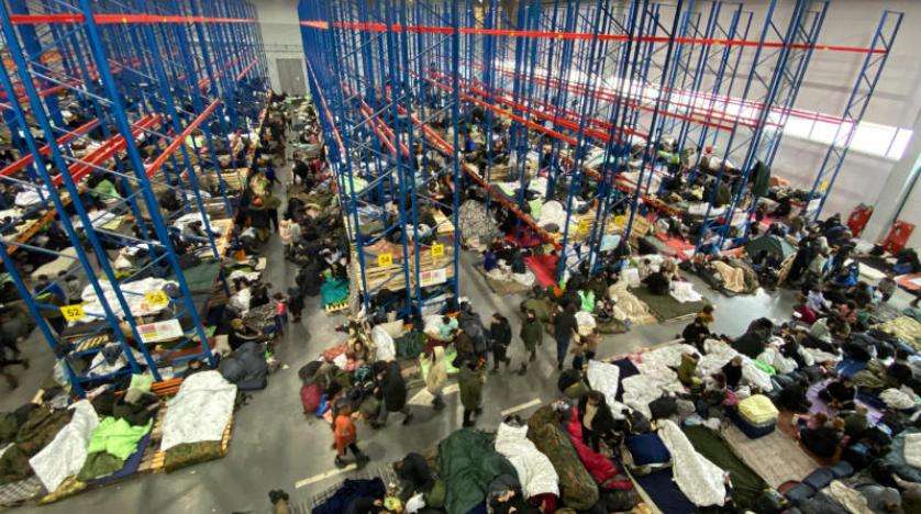 وبثت وسائل الإعلام الحكومية البيلاروسية صباح اليوم، مقاطع فيديو من المركز اللوجيستي الذي يضم حالياً جميع الأشخاص الذين كانوا يخيّمون في منطقة الغابات تقريباً.