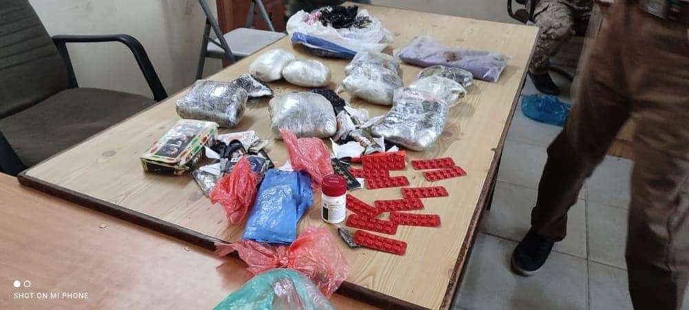 وبحسب الصور التي توضح كمية كبير من مادة الحشيش والحبوب المخدرة كانت حصيلة عمليات أمنية نفذت خلال اليومين السابقين.