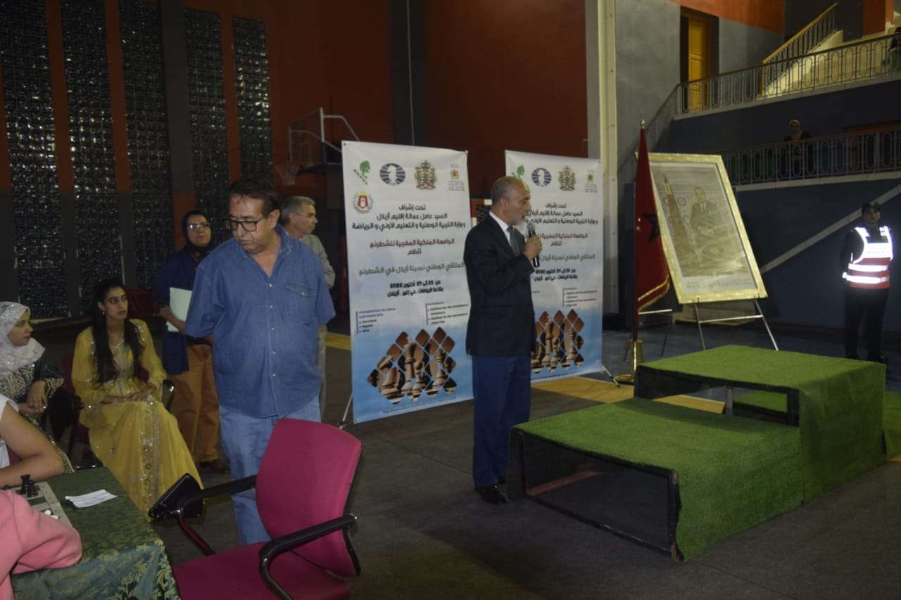 اسدل مساء يومه السبت 29 أكتوبر 2022 الستار على فعاليات الملتقي الوطني لمدينة ازيلال للشطرنج ، من خلال حفل بهيج بقاعة الرياضات بالمدينة ، الحفل ترأسه عامل الإقليم السيد امحمد عطفاوي على رأس وفد رفيع المستوى رفقة رئيس الجامعة الملكية المغربية للشطرنج السيد مصطفي امزال و باقي الأعضاء الجمعيين و عددا من الضيوف ، و ذلك بعد اسبوع من اللعب و التباري من أجل الفوز بأحد ألقاب البطولة الفردية المفتوحة للشطرنج للرجال و السيدات في الأصناف الثلاثة ، الخاطف و السريع و الكلاسيكي.