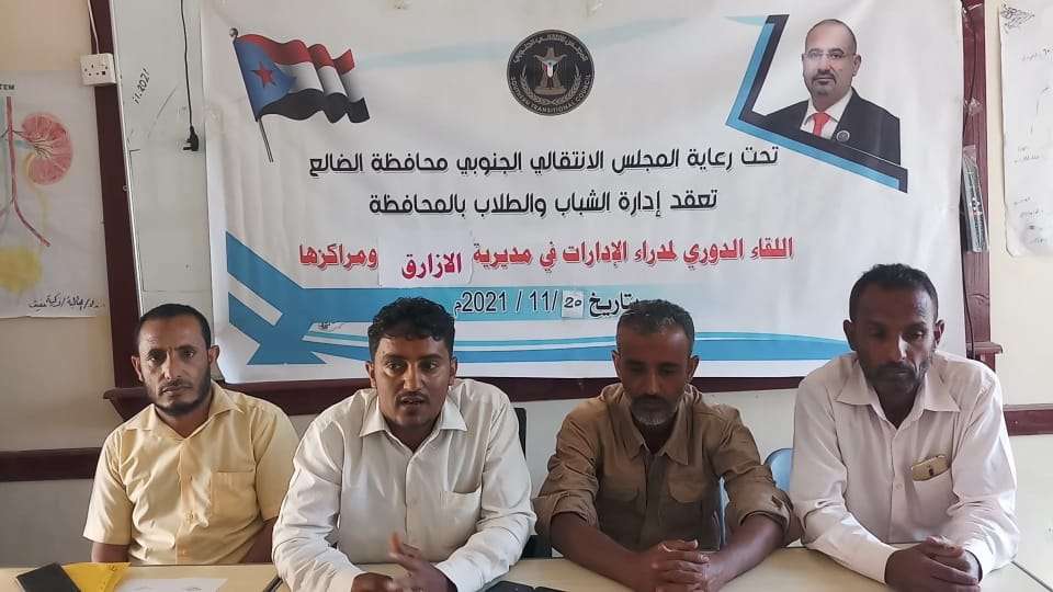 إدارة الشباب بانتقالي الضالع تعقد اجتماعا مع فروعها بالازارق
