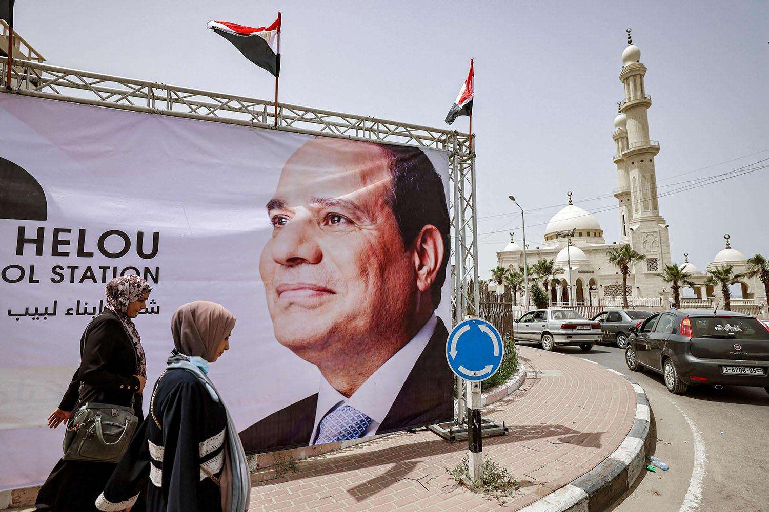 ترتفع صورة ضخمة للرئيس المصري عبد الفتاح السيسي في أحد شوارع غزة، مجسدة عزم القاهرة على استعادة دورها السياسي في القطاع الفلسطيني المحاصر، من بوابة إعادة الإعمار في اعقاب الحرب الأخيرة بين إسرائيل وحركة حماس.