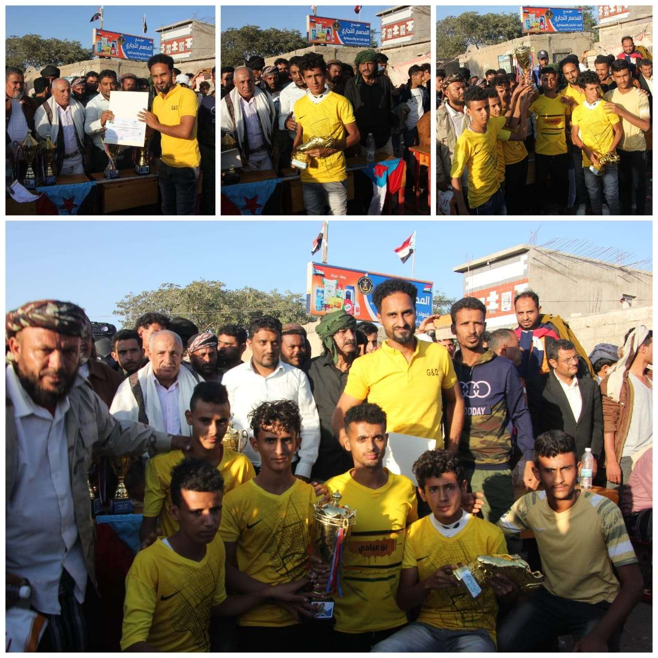 بحضور قيادات ثورية وعسكرية ورياضية يتقدمهم شقيق الشهيد أبو اليمامة القائد محمود اليافعي كرمت اللجنة المنظمة لدوري الشهيد القائد أبو اليمامة بنسخته الثانية بمحافظة الضالع عصر اليوم الاربعاء 16نوفمبر2022م فريق ناشئي حالمين بطل الدوري لفئة الناشئين وذلك بين شوطي المباراة النهائية التي جمعت الشعيب والغول لفئة الكبار عصر اليوم والتي توًج فيها فريق الغول بكأس الشهيد ابو اليمامة لفئة الكبار بضربات الترجيح.