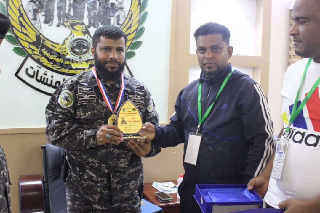 وقام المشرف الفني لاتحاد رفع الأثقال فواز محمد المقبلي ومدرب نادي الشعلة عمار فالت عياش بتكريم العميد أحمد بن عفيف بدرع وميدالية ذهبية اهداء من اتحاد رفع الأثقال.