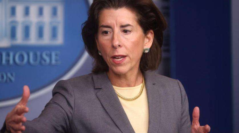 وزيرة التجارة الأميركية جينا ريموندو تتحدث من البيت الأبيض بواشنطن