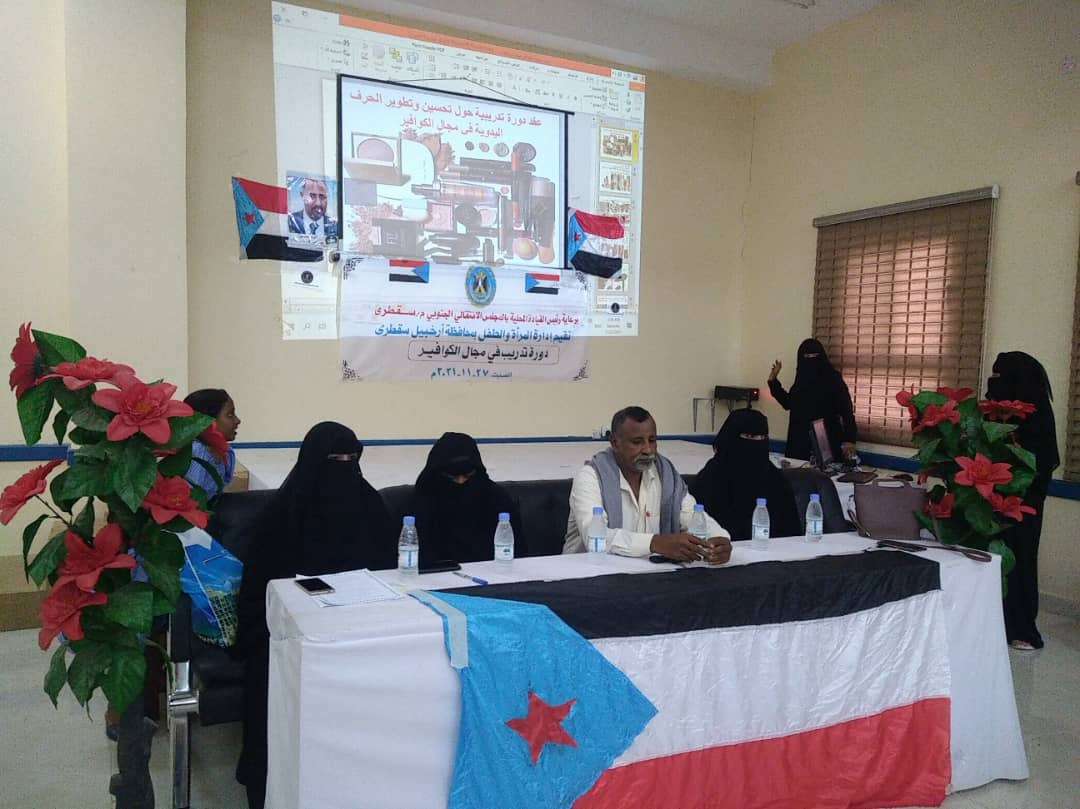دشنت إدارة المرأة والطفل بالهيئة التنفيذية للقيادة المحلية للمجلس الانتقالي الجنوبي بمحافظة أرخبيل سقطرى، مساء اليوم السبت، دورة تدريبية في مجال الكوافير.