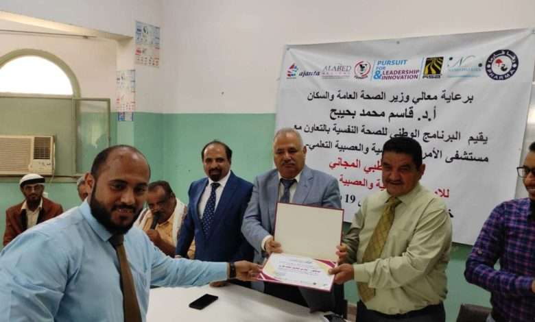 عدن.. اختتام المخيم الطبي المجاني للأمراض النفسية والعصبية والإدمان