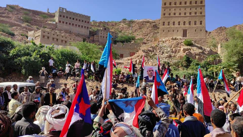 وانطلق ابناء مديرية الصعيد الى منطقة يشبم "ساحة الاحتفال" مرددين الشعارات الثورية ورافعين الاعلام الجنوبية.