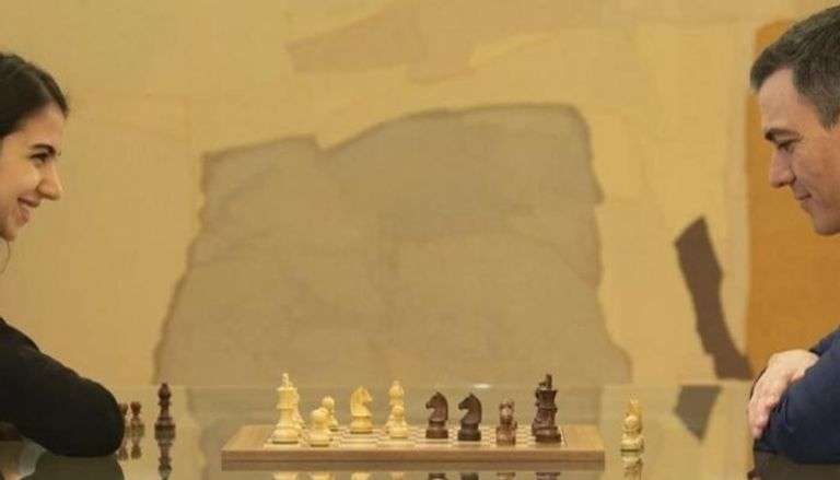 وظهرت اليوم خادم الشريعة مع "بيدرو سانشيز"، رئيس وزراء إسبانيا، في لقاء جمعها تخللها المواجهة بينهما في لعبة الشطرنج.
