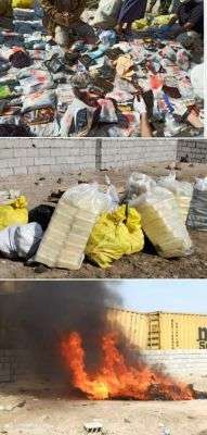 اتلفت إدارة مكافحة المخدرات بالأحزمة الأمنية كمية من المواد المخدرة تقدر بـ”449″ كيلو غرام صباح اليوم الأربعاء، في محيط النيابة في خور مكسر بالعاصمة عدن وبأشراف مباشر من القاضي ادهم العولقي رئيس النيابة الجزائية والعميد محسن الوالي قائد قوات الأحزمة الأمنية.