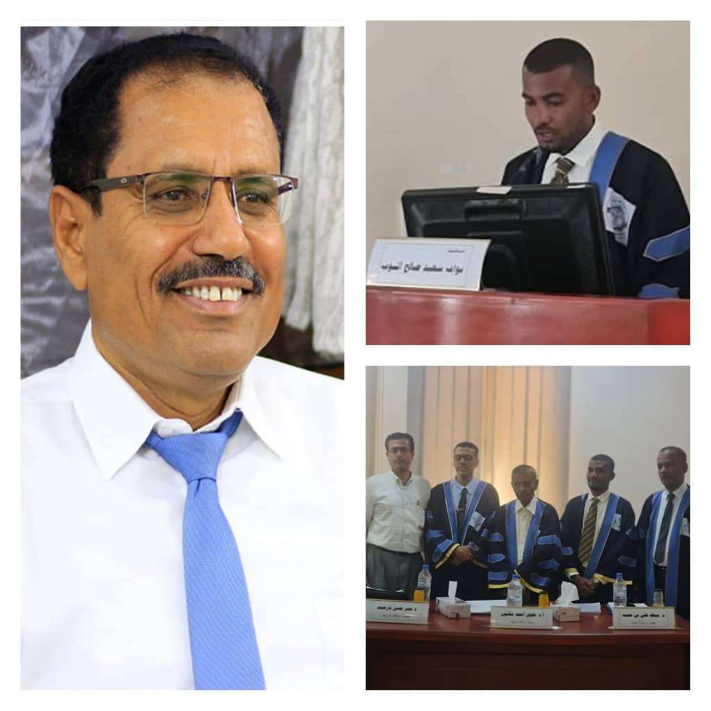 هذا وقد تكونت لجنة المناقشة لرسالة الماجستير من الدكتور علوي أحمد مكنون رئيسا ومناقشا داخلياً والدكتور عمر حسن بارحيم عضواً ومناقشا خارجياً والدكتور عيظه علي بن حميد عضواً ومشرفا علمياً .