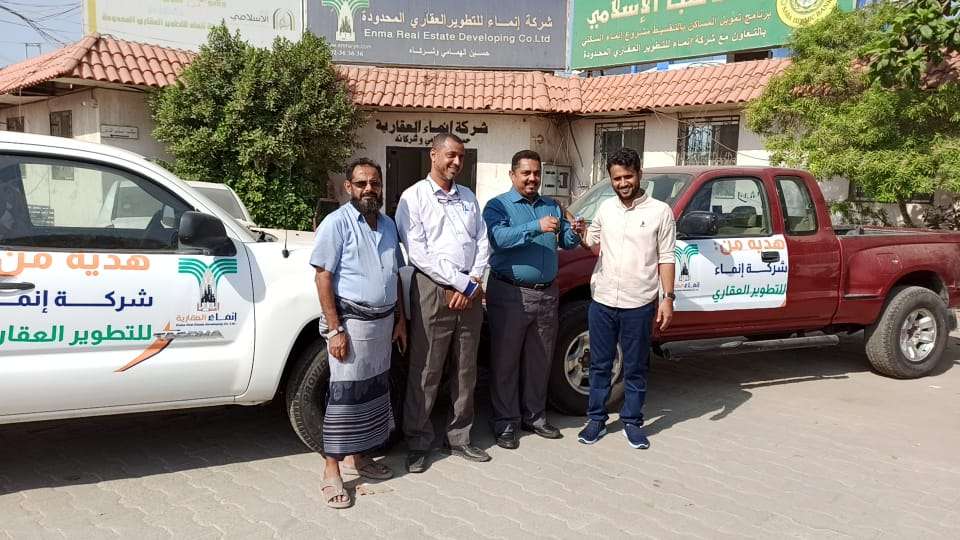 حيث تسلم السيارتين، من جانب السلطة المحلية بالبريقة، مدير عام المديرية فهمان حسن عطيري، ومن جانب شركة إنماء العقارية، القائم بأعمال المدير التنفيذي للشركة، مبارك حسين الهمامي.