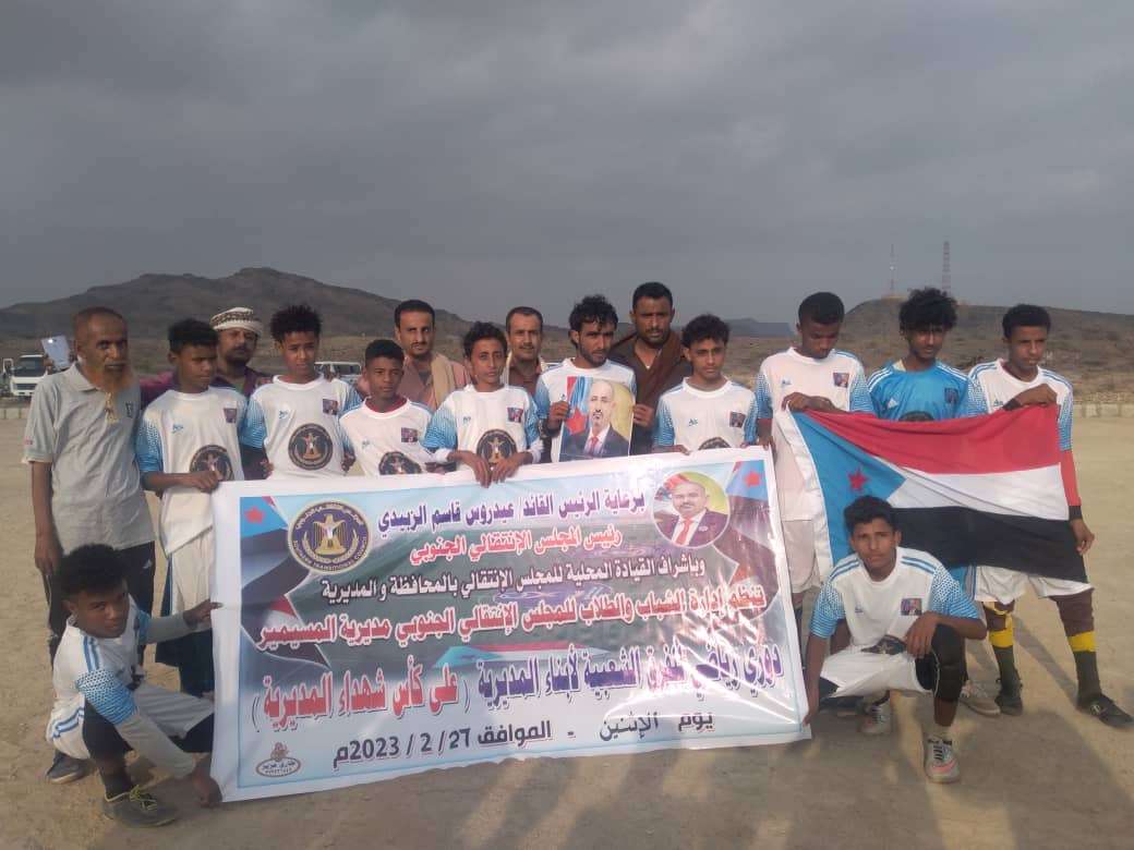 أنطلقت عصر اليوم الإثنين 27-2-2023، على ملعب الفقيد شرف ردفان الصوملي بمنطقة حبيل سويداء بالمسيمير محافظة لحج مباريات دوري شهداء الحواشب للفرق الشعبية برعاية إدارة الشباب والطلاب بالمجلس الانتقالي الجنوبي بالمديرية.