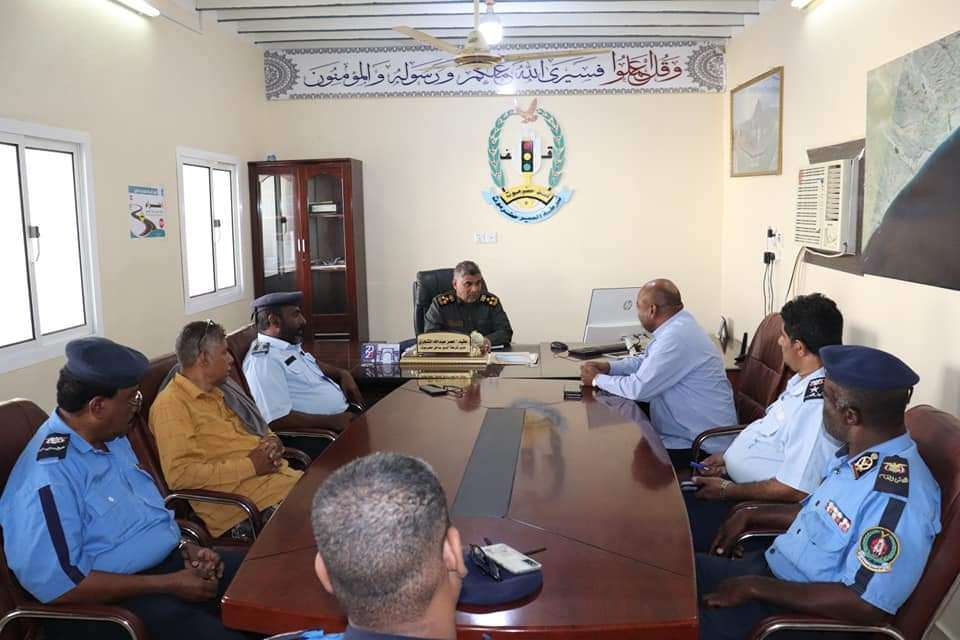مدير أمن ساحل حضرموت يعقد لقاءً مشتركًا بين إدارة شرطة السير ومكتب الشباب والرياضة